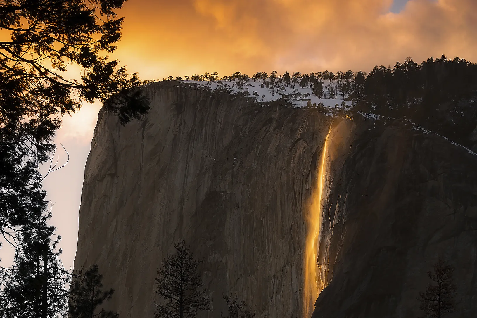“Firefall” i Yosemite-së shndërrohet çdo shkurt në një ujëvarë portokalli për shkak të pozicionit të diellit dhe shkrirjes së borës.